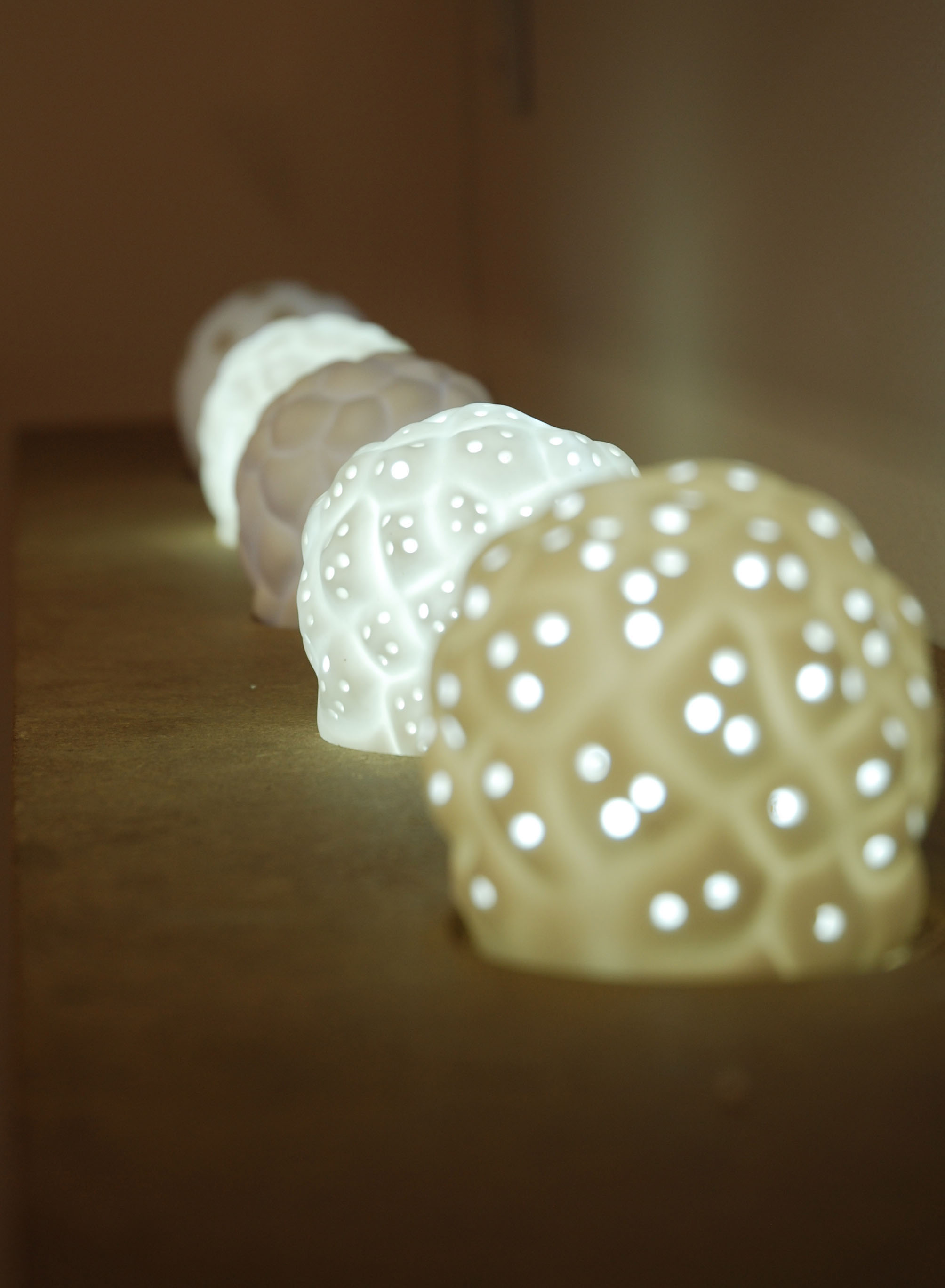 Collection of Bone-China pieces that explore lines & marks within their inner and outer structure. An interplay with light and shadow.